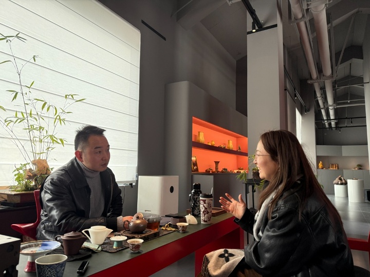 与王静专注于“驯服”手中那捧泥不同,有些人尝试“驯服”的是更抽象的东西。在离九隽美术馆不远的老陶二厂文化街区里,有一家特别的设计艺术空间。空间主理人程仲尧曾是科班出身的制壶人,做了四五年壶后,发现自己要攀上技艺高峰还需十年。而行业中,多的是拥有二三十年功力的老师傅。“他们不缺技艺,而是一张通往当下审美的图纸。”于是,程仲尧选择换一种方式“捏泥”。他如今的工作,就是将现代审美需求“翻译”成匠人们能理解并实现的图纸,再由匠人凭借精妙技艺实现。他形容这个过程为“光合作用”:“一群人聚在一起,不同的能量交换、碰撞,产生新的反应,长出新的东西。”这也像这个陶瓷小镇的隐喻。