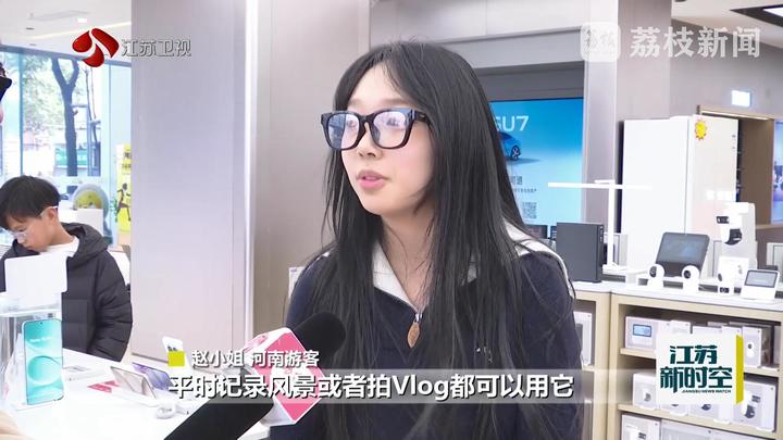 河南游客赵小姐说:“刚刚了解了一下这款智能眼镜,发现它可以打电话,也可以拍视频。我觉得挺方便的,平时记录风景或者拍Vlog都可以用它。”