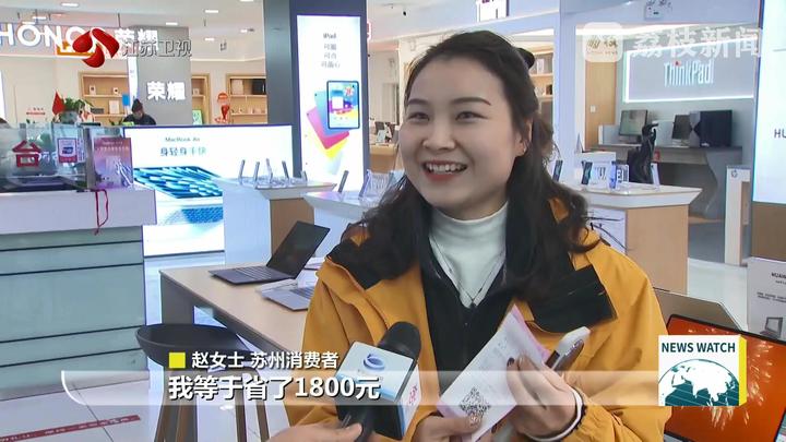 苏州消费者赵女士说:“它的原价是10999元,门店有店补优惠帮我省了200元;又帮我叠加了国补优惠,减了1500元;我用发票抽奖又抽到100元,最终省了1800元。非常吉利的数字,我很开心。”