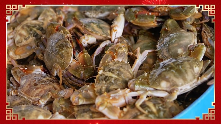 “这可是咱们的‘年货顶流’!”港湾水产的老板娘朱小惠麻利地从玻璃缸里捞起一只张牙舞爪的梭子蟹,螃蟹腹部的蟹壳泛出黄澄澄的色泽。“你瞧,如果这个‘梭子’的尖尖里都明显有蟹黄,说明这只螃蟹已经长到最肥美的程度了。”她笑着透露:最近几年春节期间店里的营业额逐年递增,今年春节,她家档口的生意再次迎来一个“小高峰”。
