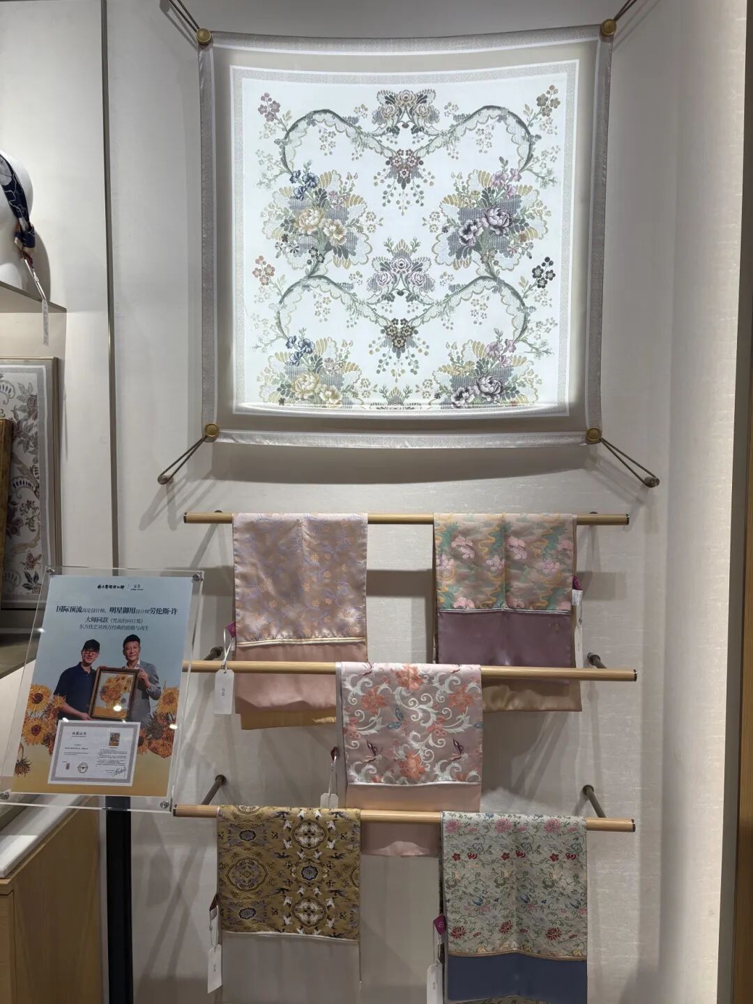 如今,云锦博物馆旗下品牌“元先”,正探索着这条路,产品也是琳琅满目。从几百元的围巾、胸针,到新春限定的装饰摆台,再到高端的服饰与空间文创,既保留了云锦的工艺精髓,又让价格更贴近大众。