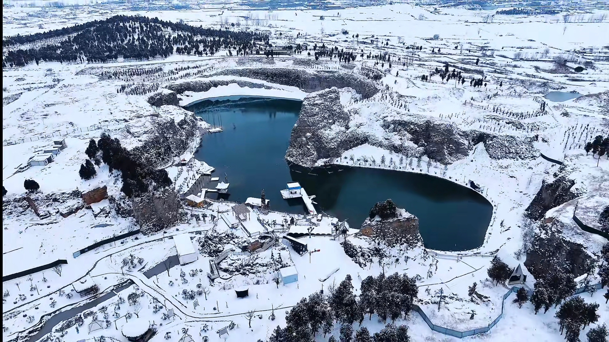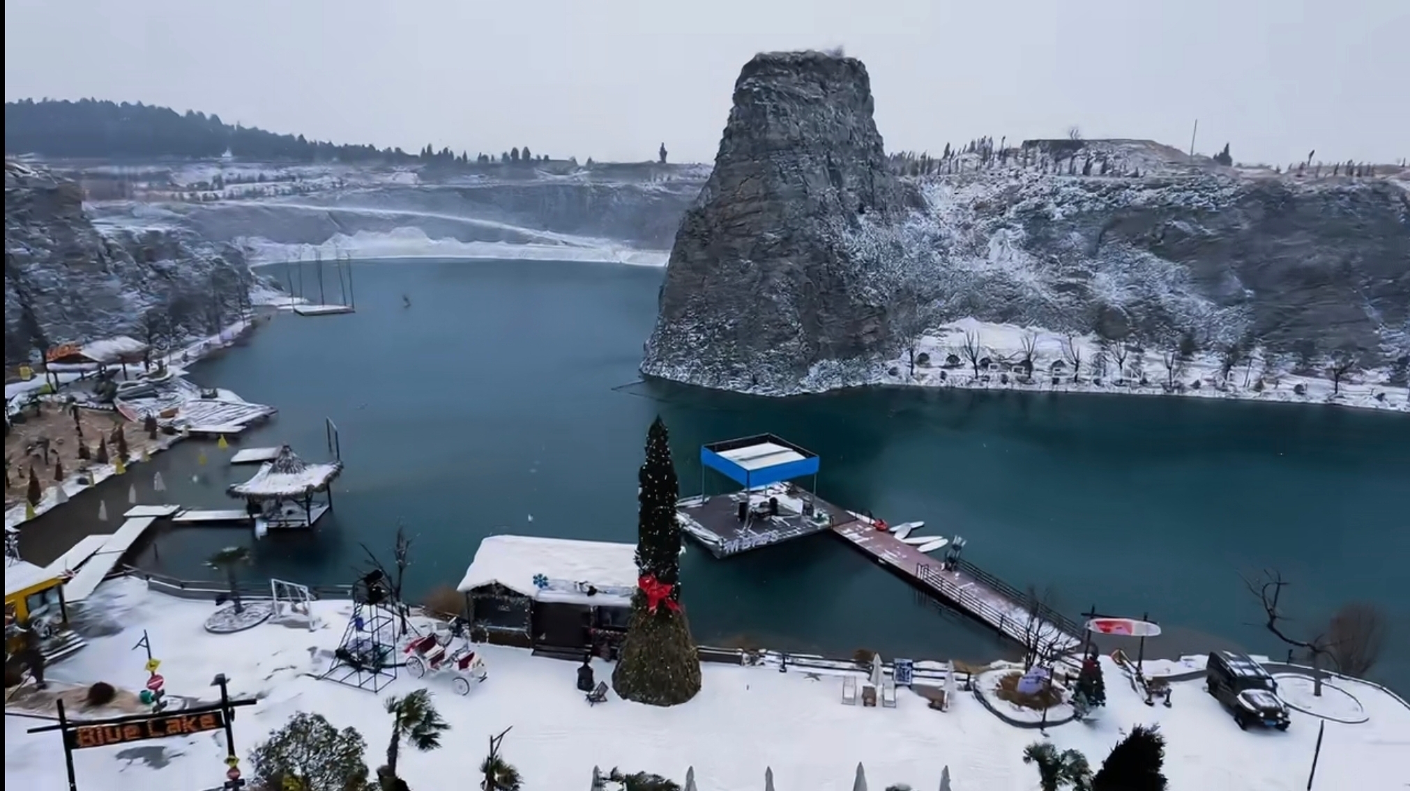 这个冬天,江苏省徐州市铜山区张集镇玫瑰山·蓝湖瀑布化身童话雪国。景区推出“马踏冰河·湖山映雪”主题盛宴,游客可欣赏矿坑瀑布冰凌垂挂的景象;可租赁马年生肖斗篷、马头帽等道具,在热带风情沙滩区拍摄别具一格的反差感照片;咖啡馆同步推出限定款熔岩热巧,游客捧杯倚靠冰瀑背景墙,随手拍出“一半火焰一半冰雪”的意境大片;观景平台铺设防滑红毯,每日人工降雪营造飘雪氛围;汉服爱好者还可预约雪中骑术体验,在蓝湖畔演绎“昭君出塞”主题古风大片。此外,景区为春节全新打造的沉浸式异域风光场景,也成为游客拍照打卡的热门选择……