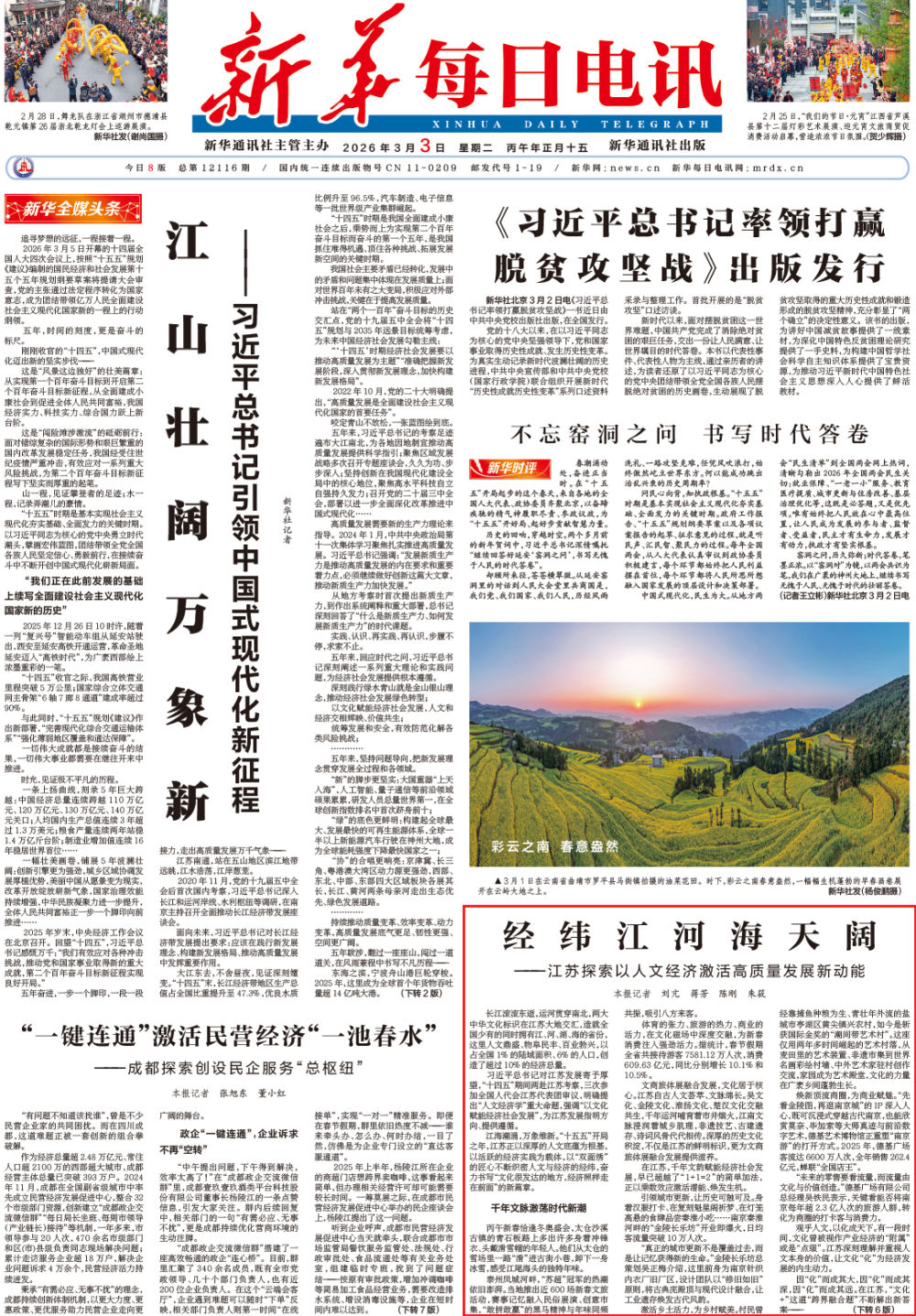 汇通江淮之气概,畅达黄海之辽阔。“十五五”开局,江苏正以系统思维开辟人文经济共生共荣的新境界。