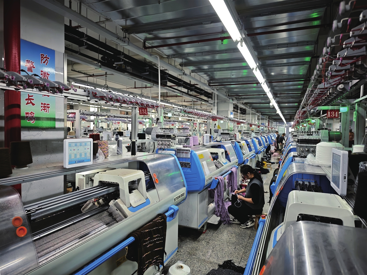 车间里,智能横机高速运转,一件件款式新颖的毛衫从生产线上滚落;直播基地内,主播们热情推介新品,订单数字快速跳动;物流园中,数以万计的包裹发往全球20多个国家和地区。