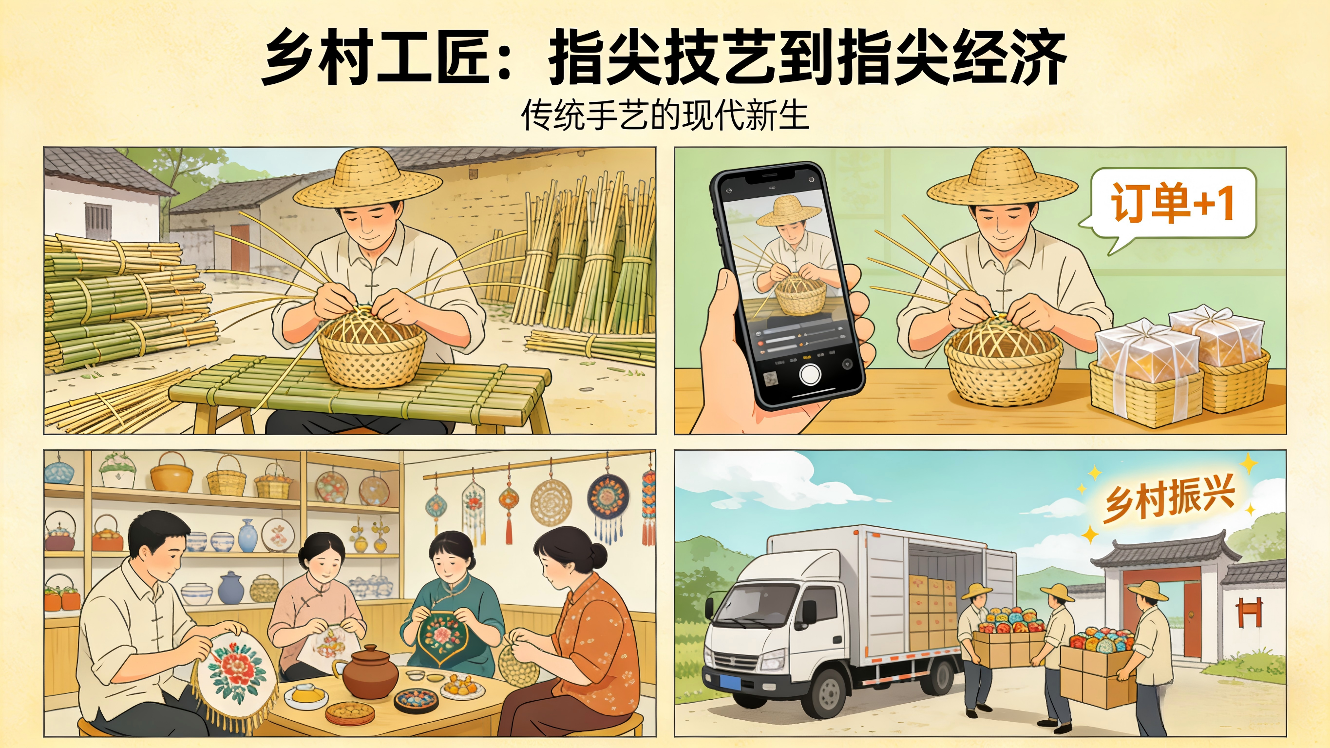 推动“指尖技艺”向“指尖经济”华丽转身,是一项系统工程,需要政府、市场、社会多方协同发力。政府部门要做好“引路人”,完善政策支持体系,搭建培训交流平台,加强知识产权保护,为工匠成长营造良好的制度环境;市场主体要做好“操盘手”,敏锐捕捉市场风向,拓宽销售渠道,推动手工产品标准化、品牌化、规模化发展;社会各界要做好“助推器”,通过媒体宣传、消费帮扶等方式,提高乡村手工产品的知名度和美誉度。同时,要充分利用数字技术,借助电商平台和直播带货,打破地域限制,让深山里的“好东西”卖出“好价钱”,通向广阔的大市场。