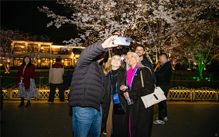 以花为媒,以夜为幕。近年来,无锡持续擦亮“国际月”“国际赏樱周”品牌,推动夜赏樱花活动成为中外友人期待的文化盛事。市外办相关负责人表示,这不仅展示了无锡“太湖明珠·江南盛地”的独特魅力,更在光影与花影的交织中,向世界亮出开放包容、合作共赢的国际化城市形象,助力“世界格局中的无锡”愈发自信自强。
