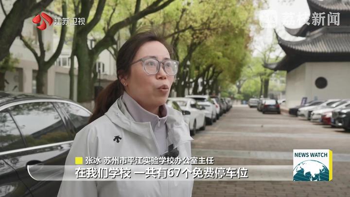 苏州市平江实验学校办公室主任张冰说:“在我们学校一共有67个免费停车位,从每天早上8点开始开放。为了更方便游客的出行,学校还提供了一些便民服务,比如说有饮水处、提供厕所,雨天提供雨伞。”