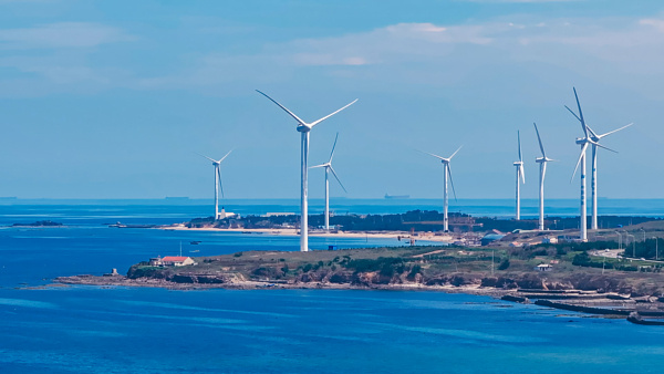 空中俯瞰,白色的风力发电机挥着百米长的叶片,在壮丽的南黄海上宛若一叶叶扁舟。去年7月,我国离岸距离最远的海上风电项目“三峡集团江苏大丰800兆瓦海上风电项目”首批机组成功并网,最远点离岸距离达85.5公里,年均发电量超26亿千瓦时,为我国海上风电向深远海发展迈出关键一步。